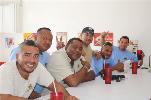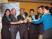 Aruba's Minister of Tourism, Transport & Labor, Otmar Oduber, was joined by Aruba Airport Authority CEO Peter Steinmetz in warmly welcoming the inaugural flight of regular service from Venezuela with Laser Airlines. Unusual circumstances of a heavy shower just at landing provided a double dousing for the plane, along with the ritual water cannons, as it made its way to the gate.