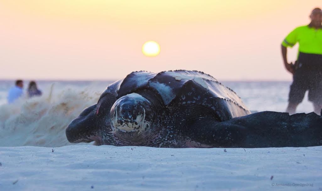 Dozens of onlookers, including Tortugaruba, were privileged to witness the huge turtle’s nesting process before she returned to the sea.