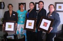 The Marriott Vacation Club Sales Team posing with Elisa Lejuez and the series of 3 lithographs that were created for this occasion. |