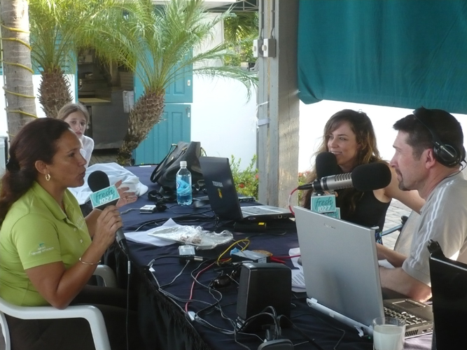 Jim & Kim interviewing ATA’s PR rep Natalie Maduro | The radio crew of Fresh FM enjoying the view of Palm Beach at the Marriott |