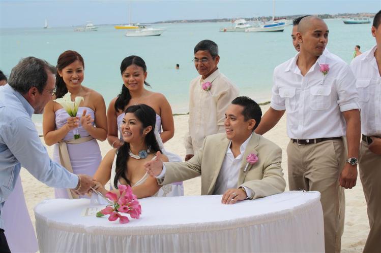 PALM BEACH - On Friday at sunset, Jerrhelyn Reyes and Jeff Madridejos exchanged vows and rings on the beautiful shores of Palm Beach. Coordinated by the Westin Resort, Aruba, the couple was joined by more than 50 family and friends who traveled to Aruba for this special day and all the festivities surrounding it.