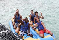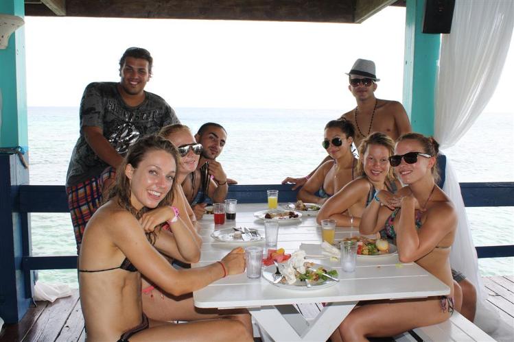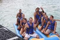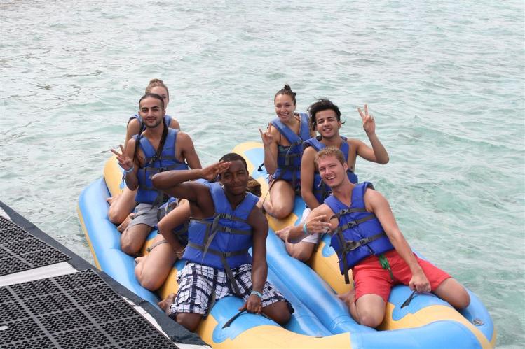 The day on De Palm Island proved to be a great team-builder for the cast who arrived in July from Europe. All the performers are thrilled with the opportunity to live and work on Aruba, and have whole-heartedly embraced the local community, and have made a great effort to explore the island and meet the people in between their demanding rehearsal and performance schedules. The day on De Palm Island was filled with fun, and everyone took advantage of all the activities offered, including snorkeling with the famous blue parrot fish, beach volleyball, and the group's favorite adventure-the banana boat ride! The group stayed well-nourished throughout the day with a bountiful culinary buffet and open bar.