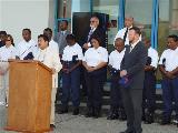 On Thursday, San Nicolas was invaded by dignitaries as the local Chocolate City Visibility Team was unveiled. Marcia Grobman the coordinator on behalf of the Aruba Hotel & Tourism Association did an excellent job orchestrating a heart-warming and poignant ceremony. Rob Smith, who is the President of the Aruba Hospitality & Security Foundation - an hotelier, he also runs the Wyndham Aruba Resort Spa & Casino reports several islands in the Caribbean are interested in learning about Aruba's original crime fighting ideas. The foundation, Rob Reports is the brain child of the Hotel & Tourism Association. The idea came about three years ago and the private sector, the hotels, banded together to fund raise for a better Police and security system. As a result of public resources and private funding coming together, Aruba today had a professionally trained and fully equipped Visibility Team patrolling the high rise area of Palm Beach, the low rise area of Eagle Beach, the downtown Mecca of shopping, Oranjestad and now also San Nicolas. It was an instant success from the get go as it brought about an exodus of troublemakers from Aruba's premium spots. In private conversations, Grobman hints the Visibility Team will also be heading inland, to Santa Cruz in the very near future.