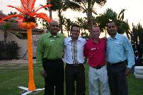 On Saturday evening, Tierra del Sol Resort, Spa & Country Club hosted the farewell dinner for the group, which was also coordinated with ECO Destination Management Services, a company devoted to developing, preparing, and handling incentive trips for with creativity and pizzazz. Together, the teams of Tierra del Sol and ECO created a chic and groovy sunset cocktail reception on the back lawn of Tierra del Sol's clubhouse. Guests were greeted with mojitos and hors d' oeuvres, then mingled and relaxed in a funky lounge set up on the lawn with electric palm trees, cushy leather sofas, and even lava lamps!