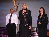 Hudson welcomed guests warmly in an unusual cocktail party location, on stage, under the sparkling theater lights.