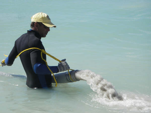 In the third phase which lasted for five days Sea Solutions N.V. pumped in 300 cubic yards of clean sand into that same area where the mud was removed forming an unspoiled white coat of sand at the bottom area.