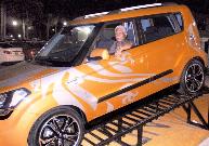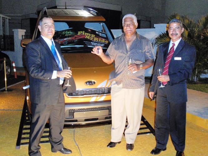 | Mr. Croes receiving the keys of his KIA Soul by Casino Marketing Manager Adolf Everon and Casino Shift Manager Rouel Starke. |